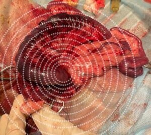 Cây kim đã gỉ được lấy ra từ ruột non của bạn Bun, kéo theo đó là hệ luỵ viêm ruột, xuất huyết diện rộng, đối mặt với nguy cơ nhiễm trùng hoại tử cao.